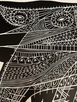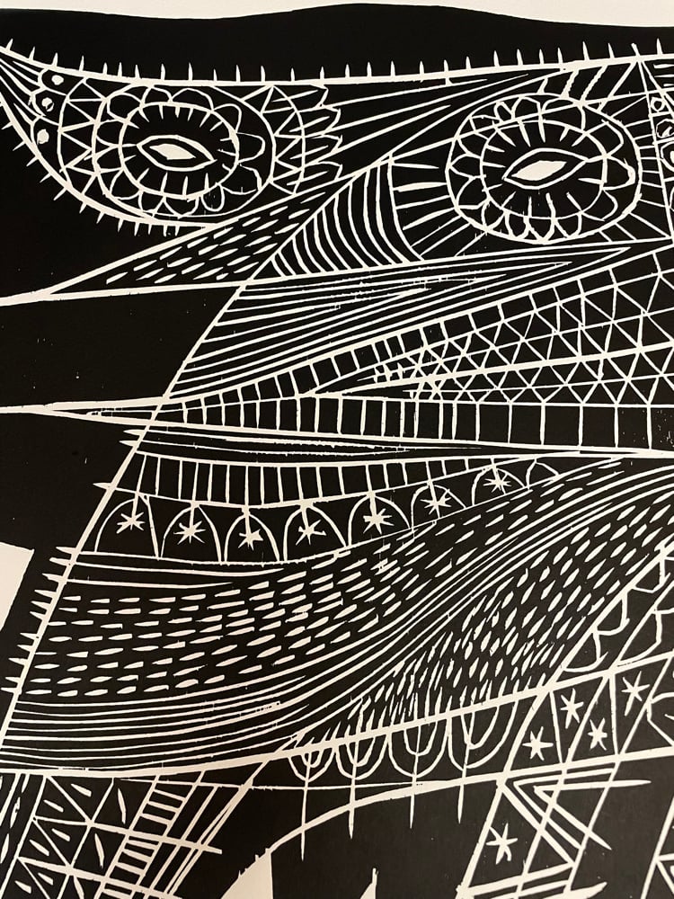A single colour woodcut print in a limited edition of 100 handprinted by the artist on a 76cm x 57cm sheet of 250g Somerset velvet paper.